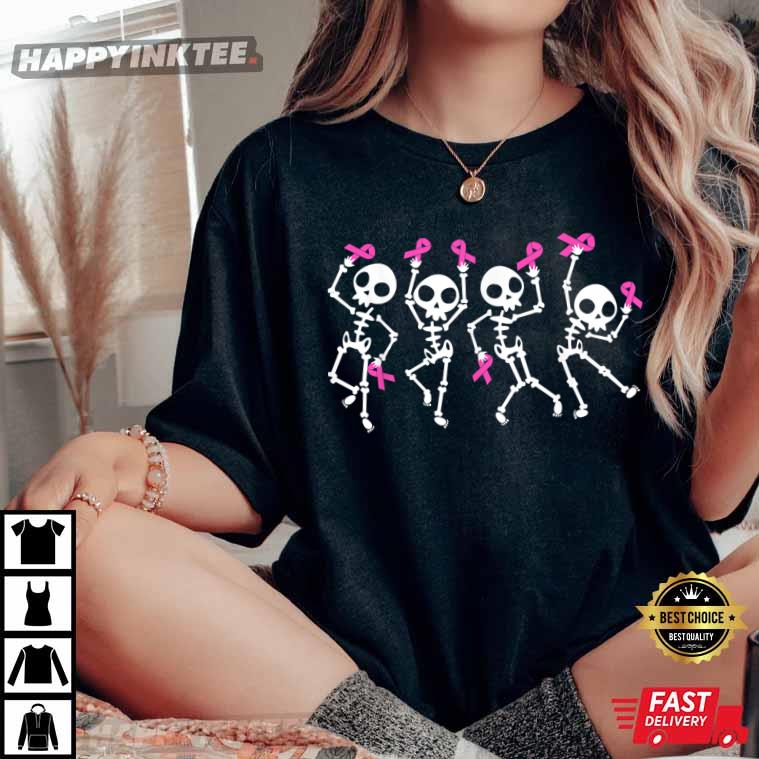 Pink Ribbon Breast Cancer Awareness Skeleton T-shirt