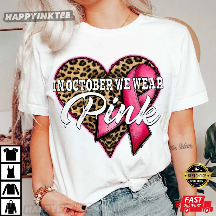 Pink Ribbon Leopard Breast Cancer Awareness T-shirt