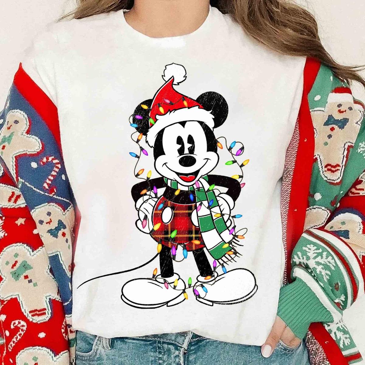 Santa Disney Mickey Mouse Classic Christmas Light Shirt 1