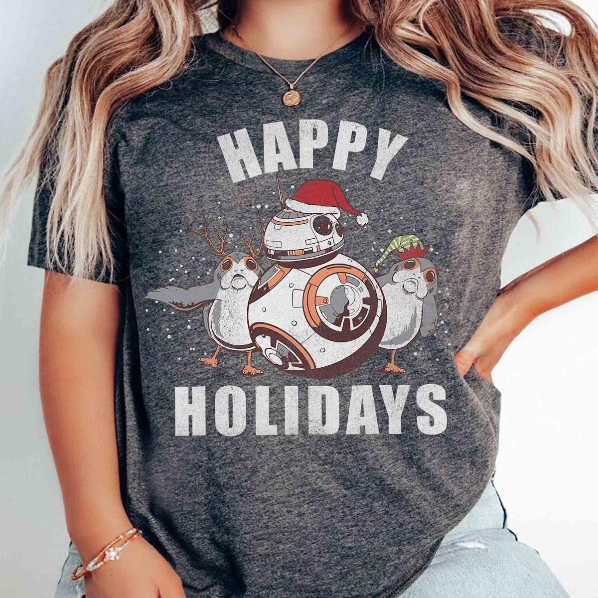 Santa Droid Bb 8 And Porgs Happy Holidays Christmas Shirt 1
