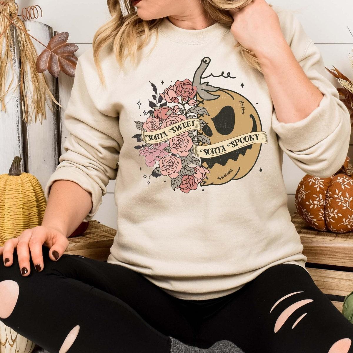 Sorta Sweet Sorta Spooky Halloween Vibe Roses Pumpkin Shirt 1