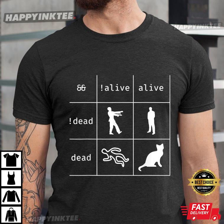 Boolean Logic Alive And Dead Funny Programmer Cat T-shirt