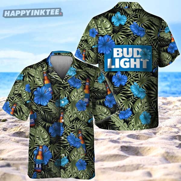 Bud Light Tropical Flower With Palm Leaves Hawaiian Shirt