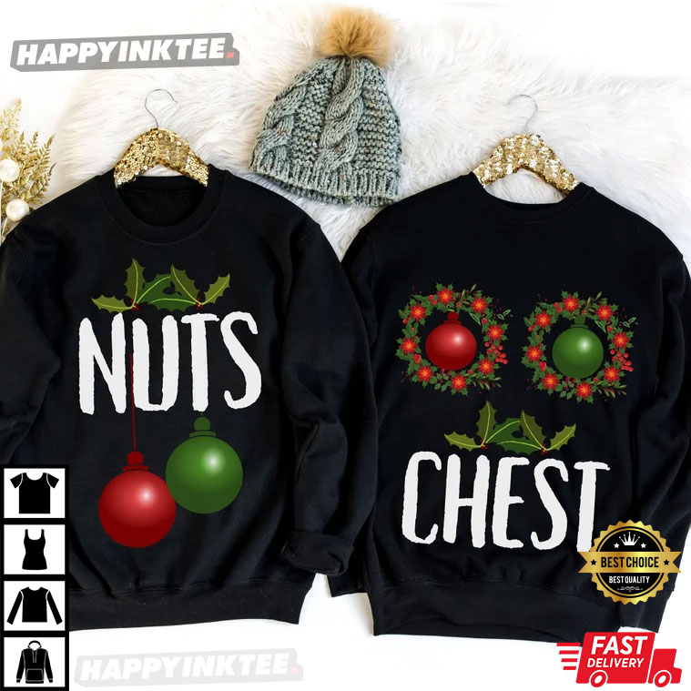 Christmas Funny Chest And Nuts His And Her Couples Shirts
