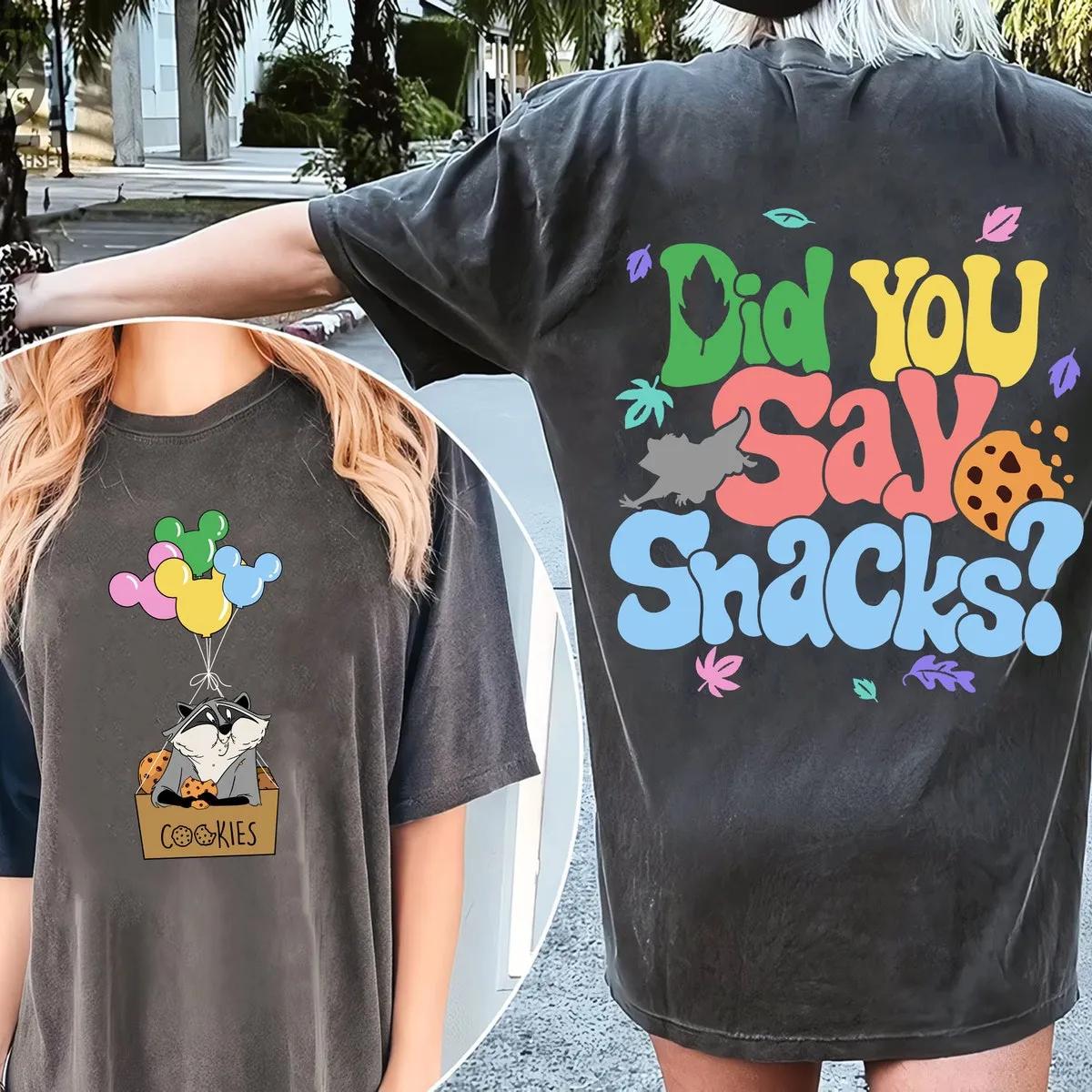Double Sided Meeko Raccoon Cookies With Mickey Balloon Did You Say Snacks Shirt 1