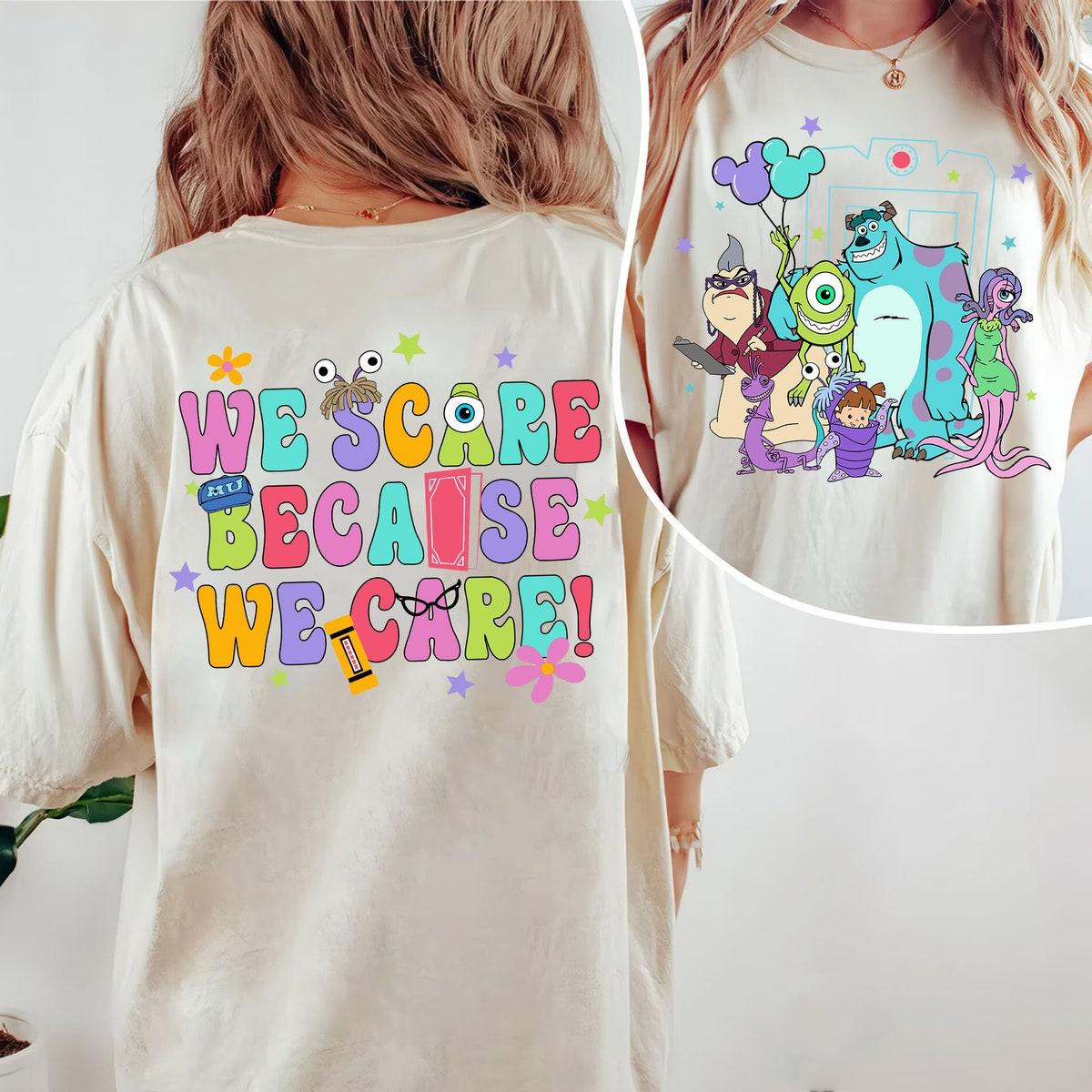 Double Sided Monster Inc We Scare Because We Care Shirt 1
