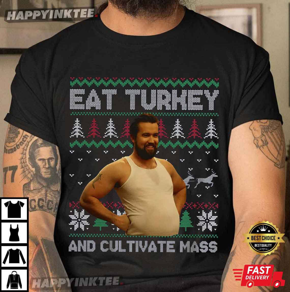 Eat Turkey And Cultivate Mass Ugly Christmas T-shirt