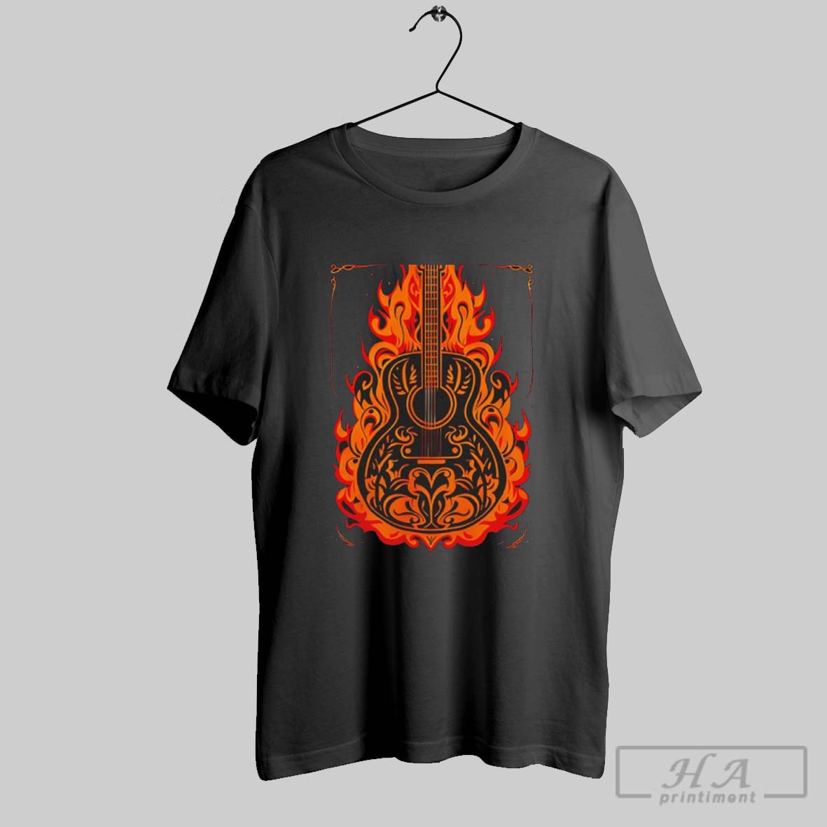 Flaming Acoustic Guitar Retro Music Lover Shirt