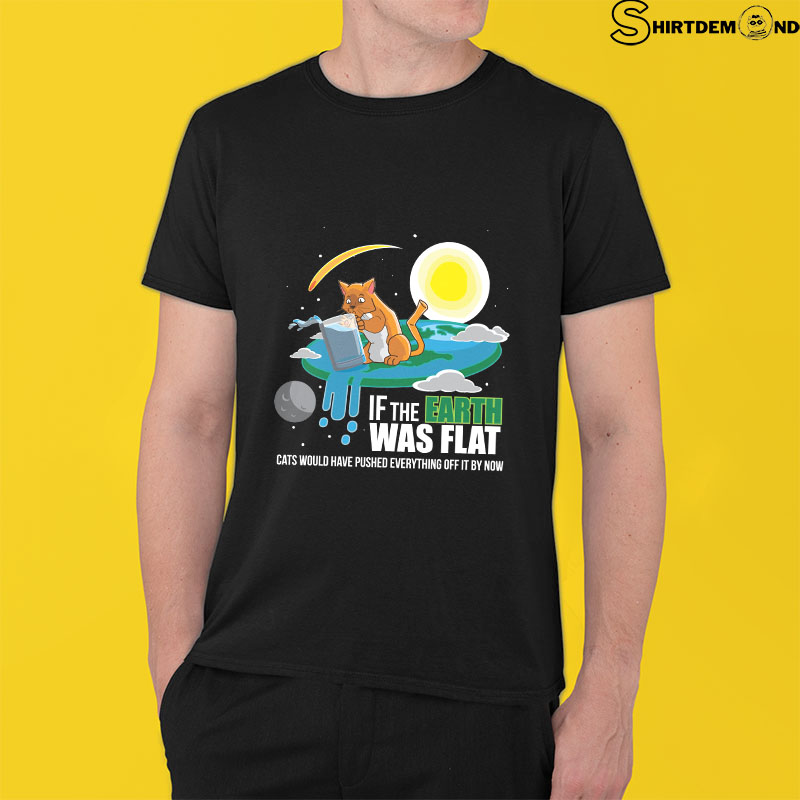 Flat Earth Cats Pushes Everything Off Funny If Earth Was Flat Cats Would Push Everything Off Shirt Essential T Shirt