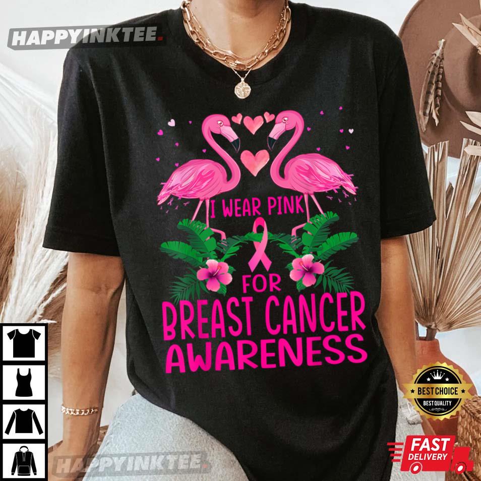 Flamingo I Wear Pink For Breast Cancer Awareness T-shirt