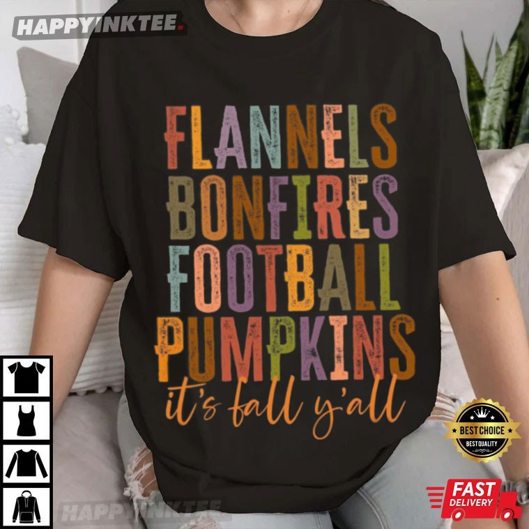 Flannels Bonfires Football Pumpkins Fall Season T-shirt
