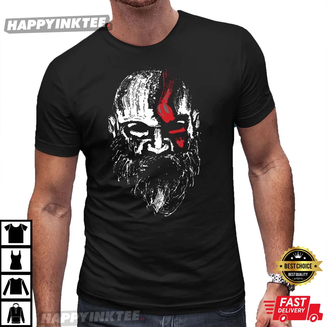God Of War Kratos Old Man Kratos Face Gift For Dad T-shirt