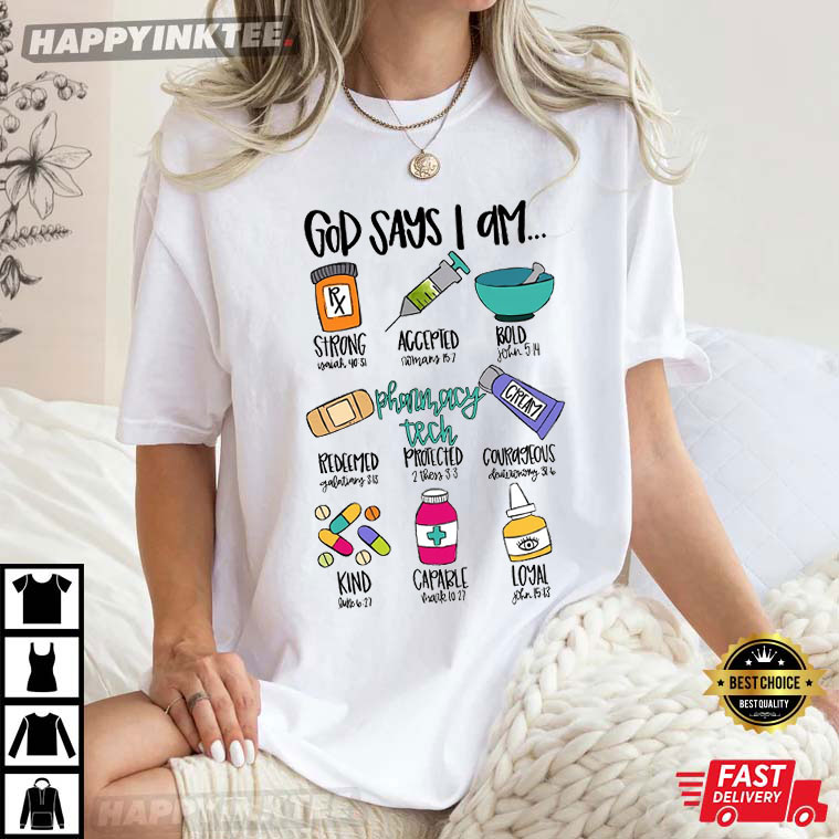 God Says I Am Pharmacy Tech Funny Christian Gift T-shirt