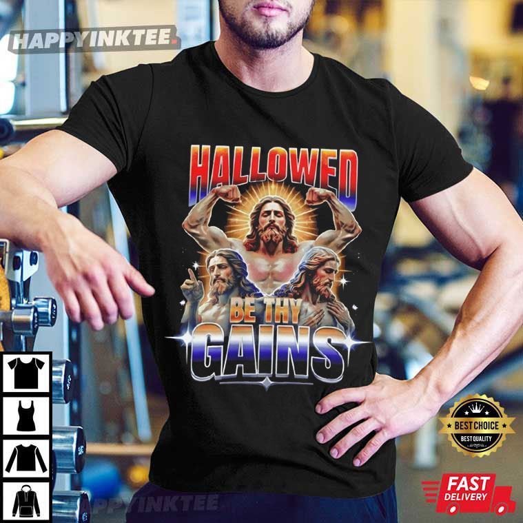 Jesus Hallowed Be Thy Gains Funny Gym Workout T-shirt