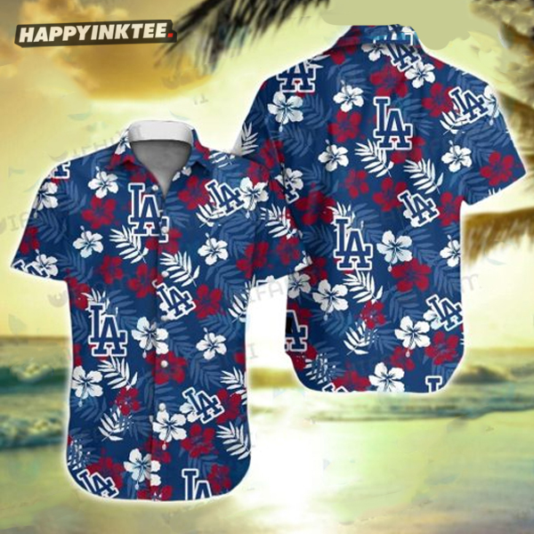 Los Angeles Dodgers Hibiscus Palm Leaves Hawaiian Shirt