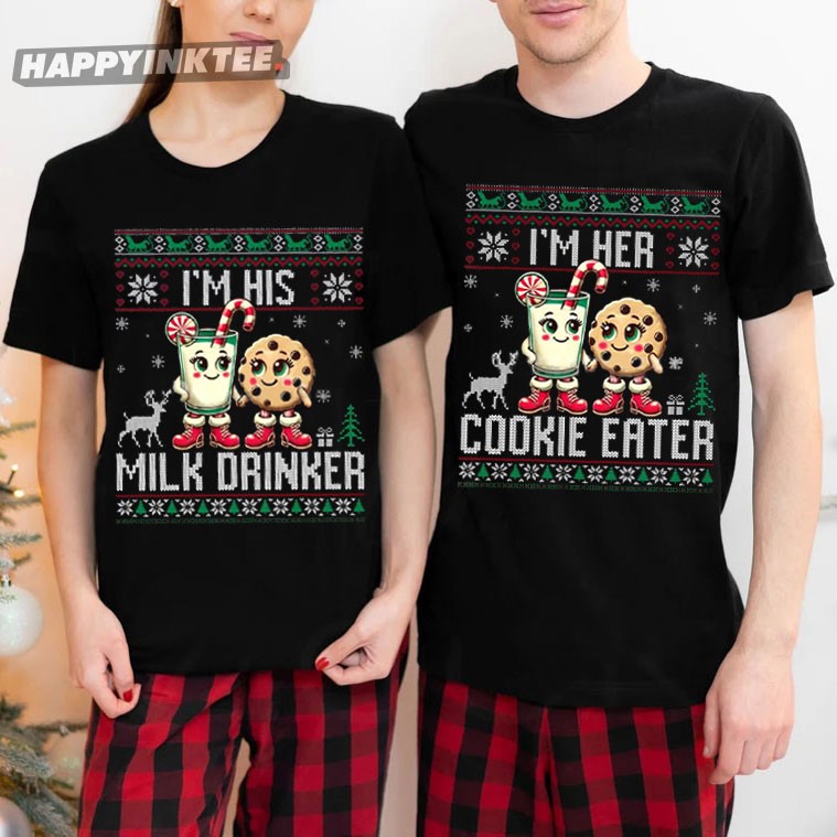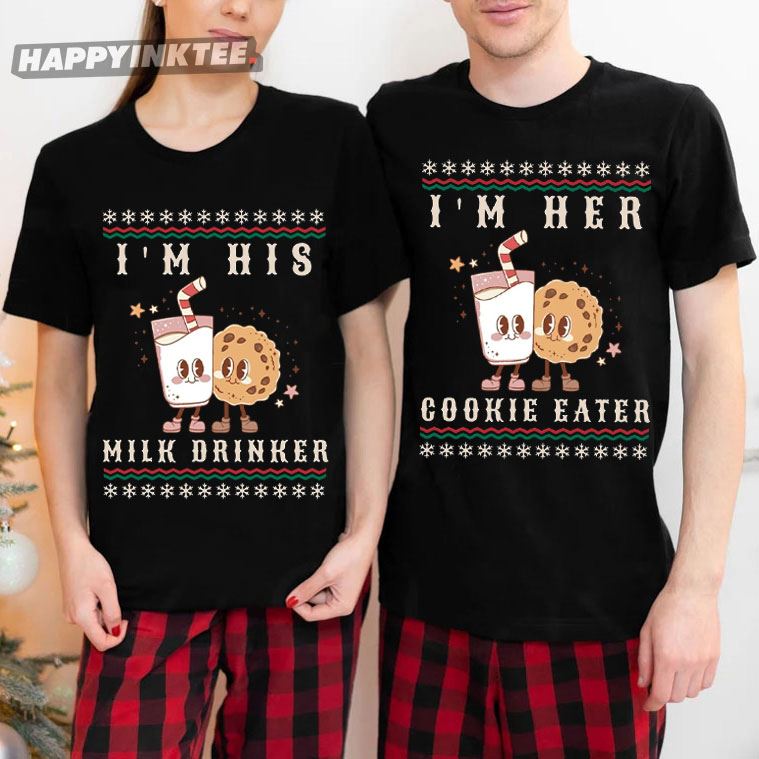 Milk Drinker Cookie Eater Matching Christmas Couple Shirts