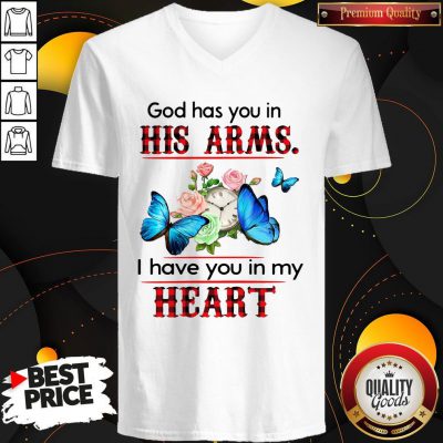 Nice God Has You In His Arms I Have You In My Heart Butterflies Flower V-neck